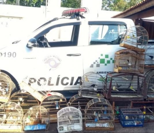 Policiais Militares do 4º Batalhão de Polícia Ambiental resgataram 35 aves de um cativeiro ilegal no bairro Vila Maria, em Mirassol. O caso aconteceu na última quinta-feira (25) e os policiais chegaram até o local após uma denúncia. Os pássaros eram mantidos em várias gaiolas.